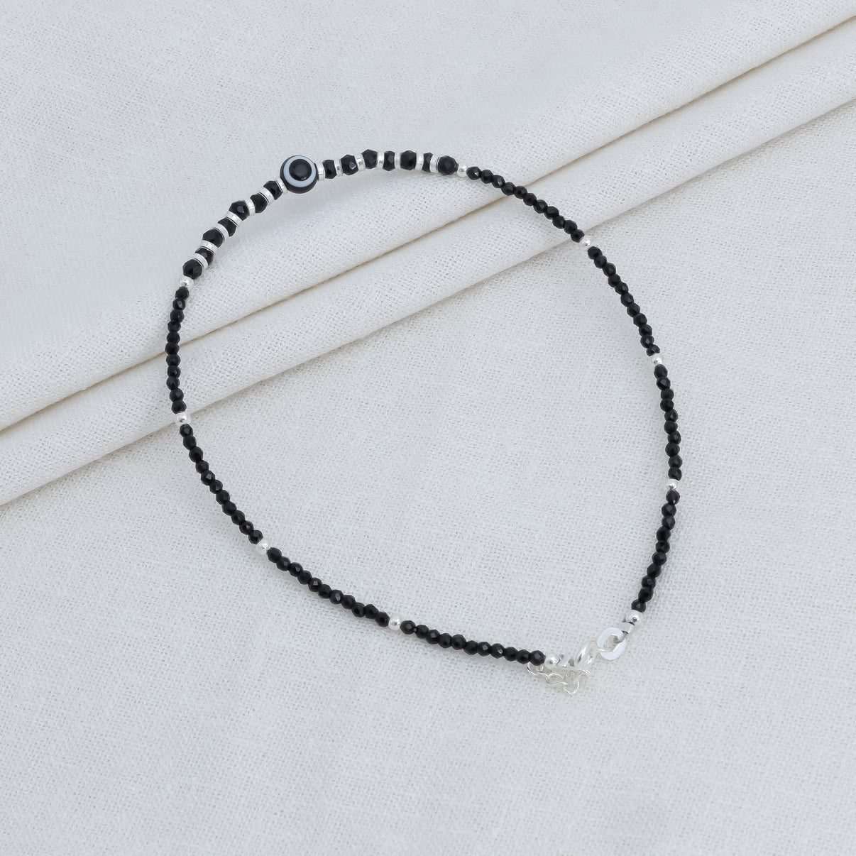 Elegant Evil Eye Silver Anklet with Black Beads/div>