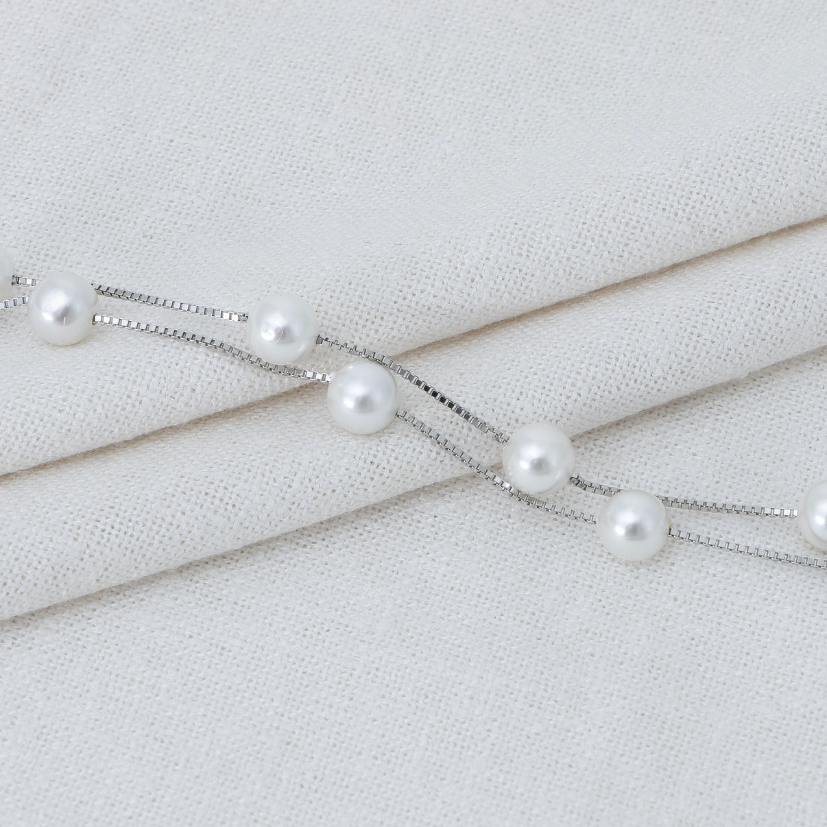 Elevate your jewellery collection with this Double Strand Pearl Accent Silver Bracelet, expertly crafted for timeless elegance. Featuring two refined strands of lustrous pearls delicately accented by high-quality silver, this bracelet offers a sophisticated balance of classic charm and modern design. Ideal for both formal occasions and everyday wear, it enhances your ensemble with a subtle yet striking shimmer, ensuring lasting style and refined craftsmanship.