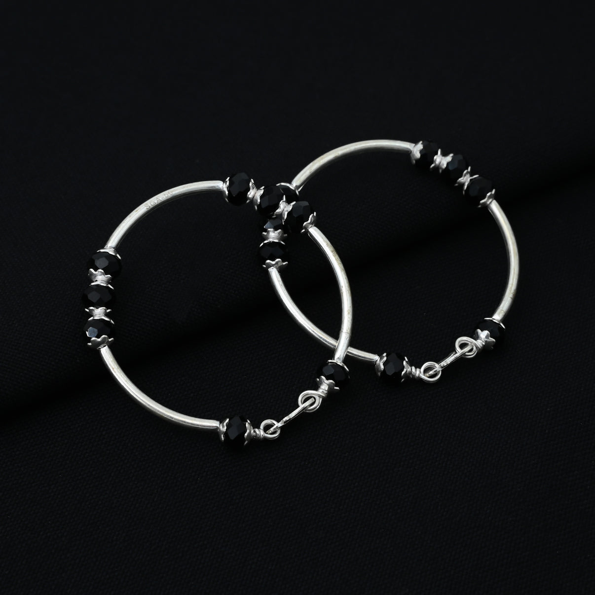Silver Black Beads Kada for BabySilver Black Beads Kada for BabySilver Black Beads Kada for Baby