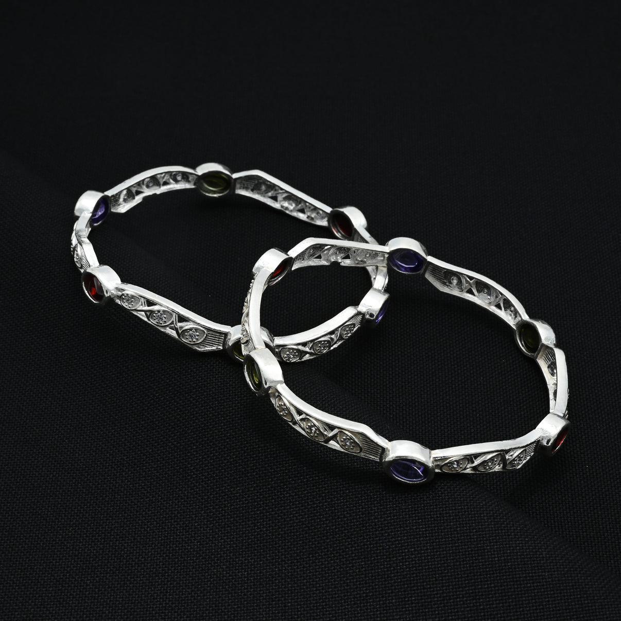 Silver Glamorous Colourful Gems BanglesSilver Glamorous Colourful Gems BanglesSilver Glamorous Colourful Gems Bangles