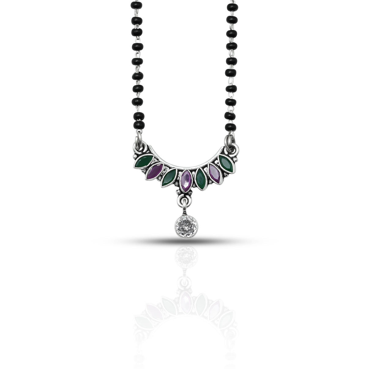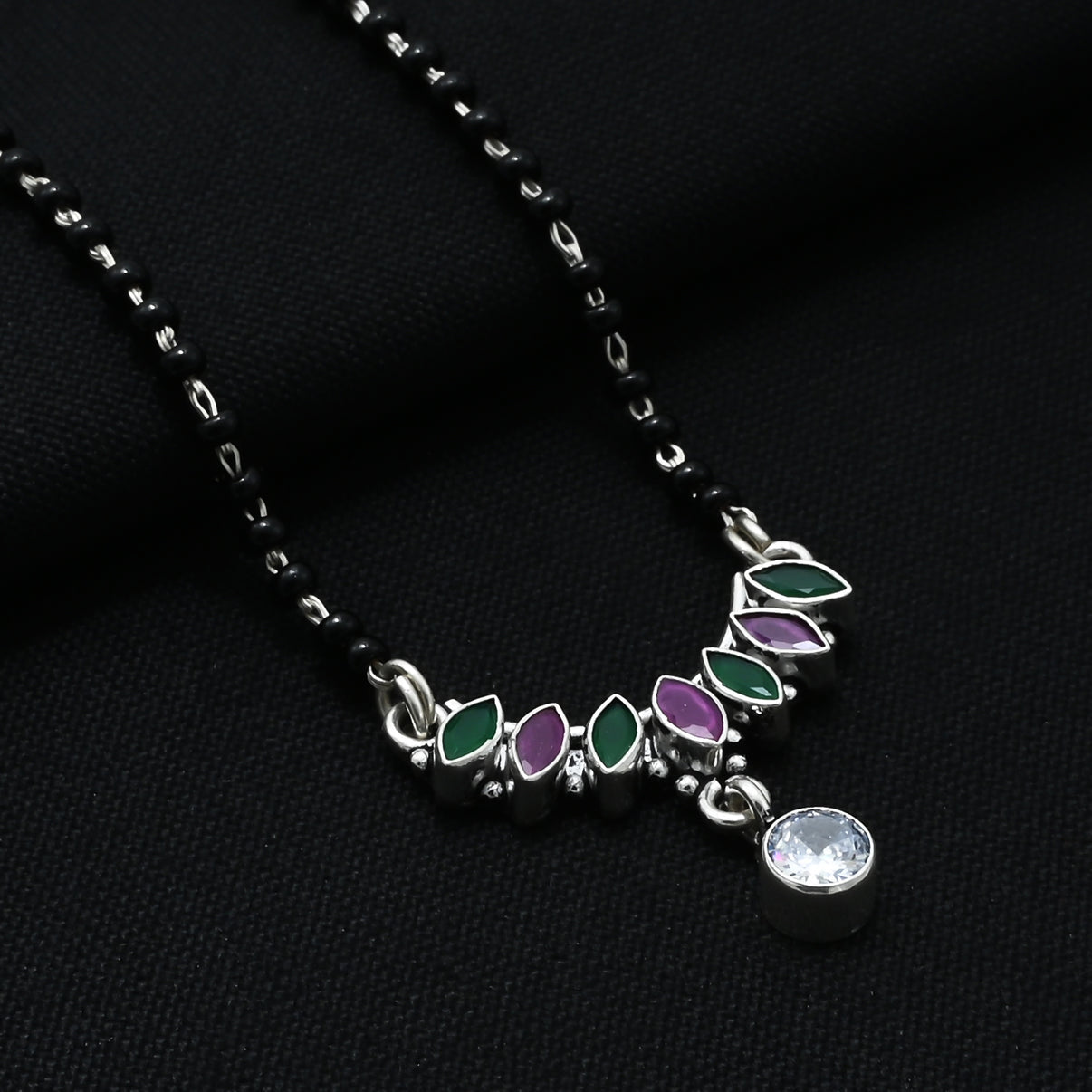 Sterling Silver Round Green and Purple leaf Gemstone MangalsutraSterling Silver Round Green and Purple leaf Gemstone MangalsutraSterling Silver Round Green and Purple leaf Gemstone Mangalsutra