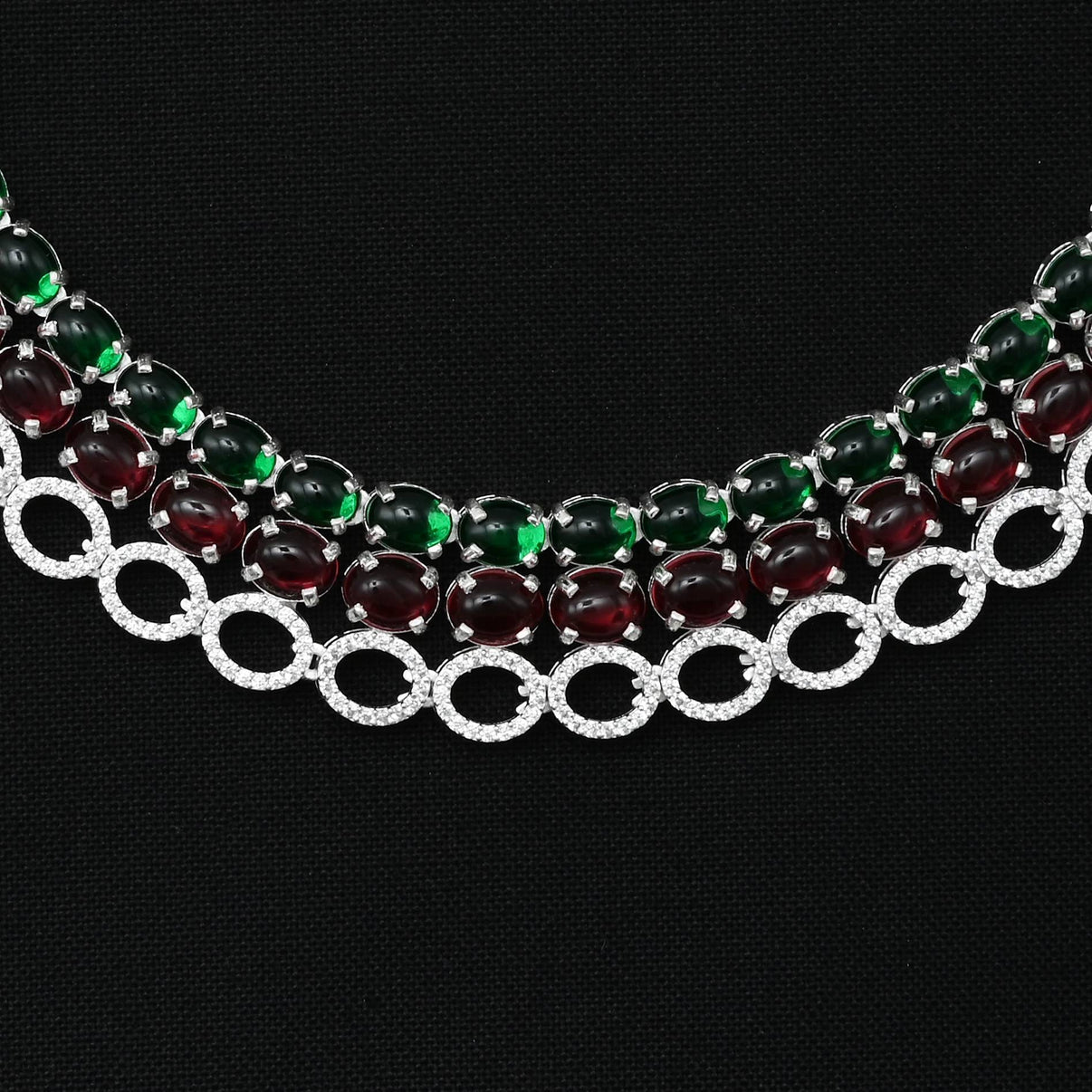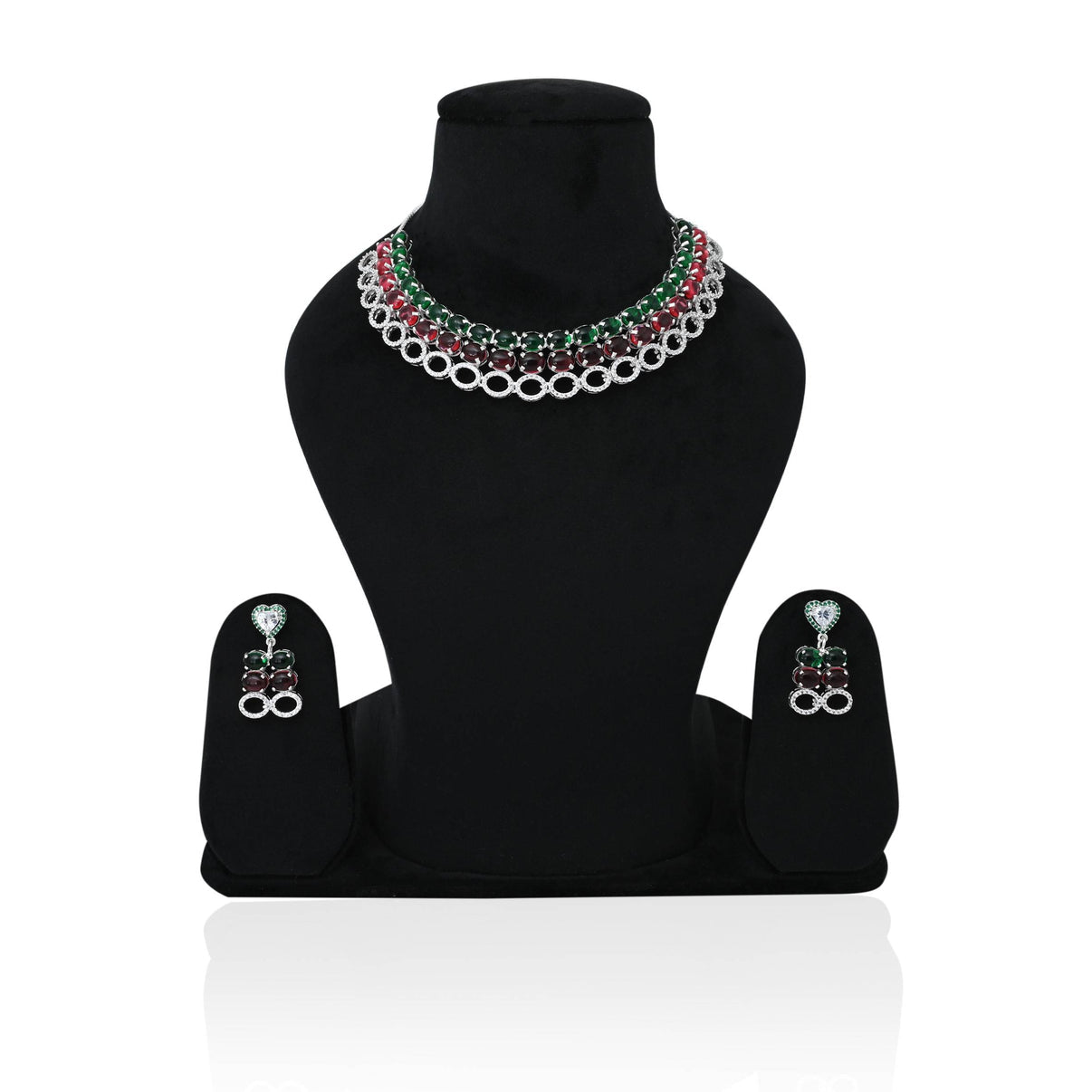 Indulge in elegant sophistication with our Premium Silver Bridal Jewellery Set. Exquisitely crafted with gemstones, the necklace, and earrings add a touch of glamour to any bridal ensemble. Elevate your look and leave a lasting impression on your special day. jewellery set